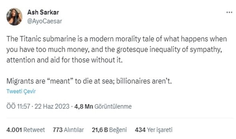 Batı medyasının sınıf ayrımı: Göçmenlerin denizde ölmesi normal, milyarderlerin denizde ölmesi trajedi