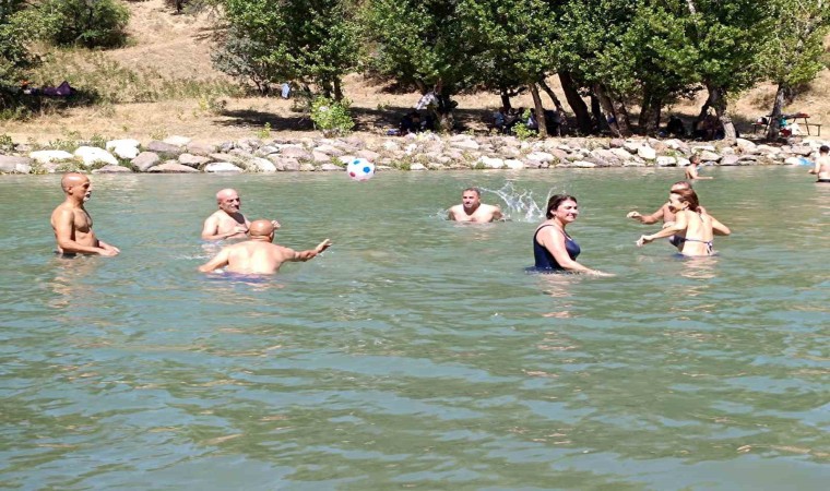 Ege kıyılarındaki yoğunluktan bunalan 50 kişilik grup, İzmir’den Tunceli’nin Çemişgezek ilçesine gelerek Tağar çayı suyunda yüzüp sakinliğin keyfini çıkardı.