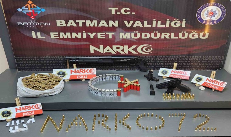 Batman İl Emniyet Müdürlüğü Narkotik Suçlarla Mücadele Şube Müdürlüğü ekipleri koordinesinde Batman merkez, Kozluk ilçesi ve Van’da eş zamanlı düzenlenen uyuşturucu operasyonunda torbacılık yöntemiyle uyuşturucu satışı yaptığı tespit edilen 12 şüpheli gözaltına alındı. Şüphelilerin ev ve iş yerlerinde yapılan aramalarda toplam 3 kilo 811 gram eroin, 404 gram esrar, 75 uyuşturucu hap, 1 ruhsatsız tabanca, 4 şarjör, 1 pompalı tüfek, 167 fişek ve 41 tüfek kartuşu ele geçirildi. Emniyetteki işlemlerinin ardından adliyeye sevk edilen 12 şüpheliden 5’i adli kontrolle serbest bırakılırken, 7 şüpheli ise tutuklanarak cezaevine gönderildi.