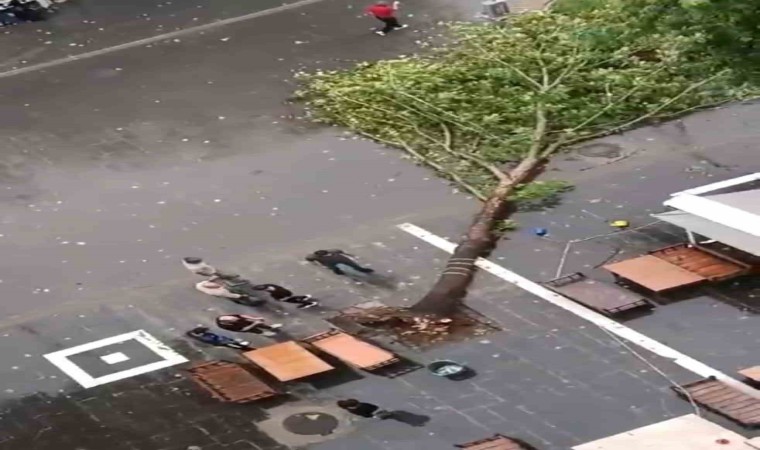Öte yandan, yağışla birlikte etkili olan fırtına maddi hasara neden olurken, ana cadde üzerinde bulunan bir ağacı ikiye böldü.