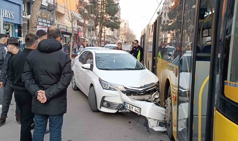 Batman’da belediye halk otobüsü ile otomobilin çarpıştığı maddi hasarlı kaza meydana geldi.