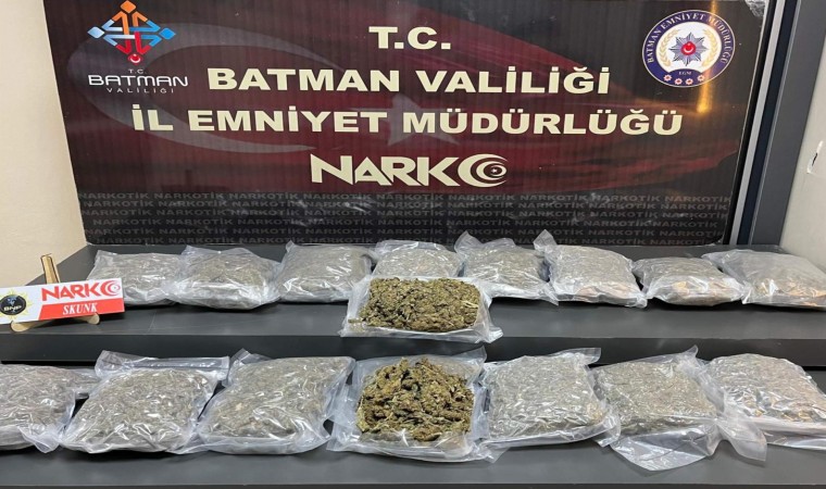 Batman’da İl Emniyet Müdürlüğü Narkotik Suçlarla Mücadele Şube Müdürlüğü ekipleri tarafından, uyuşturucu madde ticareti yapan şüphelilerin yakalanmasına yönelik yapılan çalışmalarda, Batman-Diyarbakır karayolu üzerinde bir tır durdurularak arandı. Narkotik köpeği ’Linda’ ile yapılan aramada 8 kilo 250 gram sentetik uyuşturucu skunk, ele geçirildi. Gözaltına altına alınan 2 şüpheli, emniyetteki işlemlerinin ardından sevk edildikleri adliyede tutuklanarak cezaevine gönderildi.