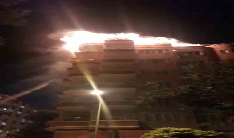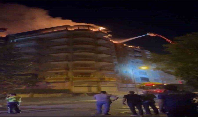 Batman’da 9 katlı bir binanın teras katında çıkan yangın geceyi aydınlatırken, alevler TOMA desteğiyle söndürüldü.