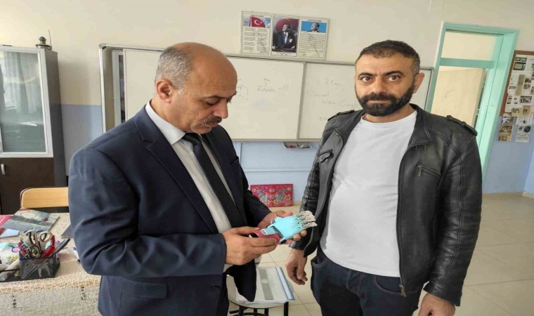 Sason’daki 3 bin rakımlı Mereto Dağı eteklerinde bulunan okulda üç boyutlu baskıyla yapılan protez el, ampütelere günlük işlerinde kolaylık sağlıyor.