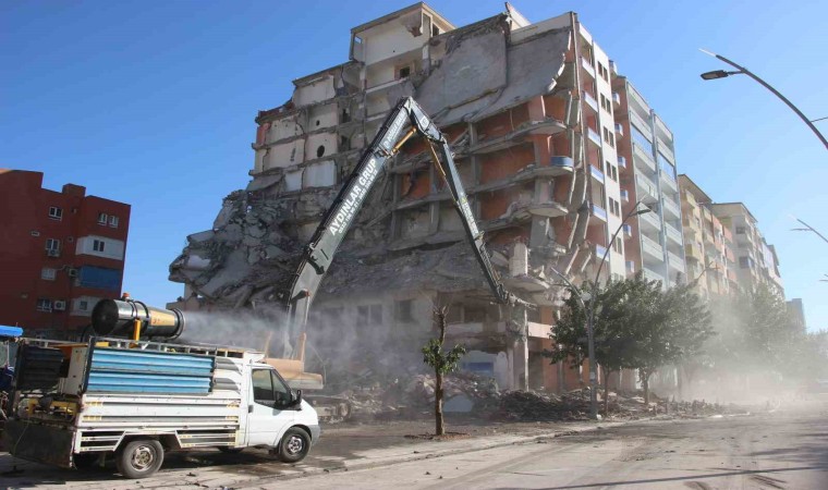 Polis ekiplerinin de güvenlik önlemi aldığı Diyarbakır Caddesi’ndeki Atatürk Bulvarı, Batman’ın en işlek caddelerinden biri. Bulvarda bulunan ve depremin yaşandığı günden beri yıkılmayı beklenen bir bina daha kontrollü şekilde yıkıldı. Yıkım ekipleri tarafından çevreye rahatsızlık verilmemesi adına molozlar itfaiye araçları ve park bahçe sulama araçlarıyla ıslatılarak çalışmalar yürütüldü.