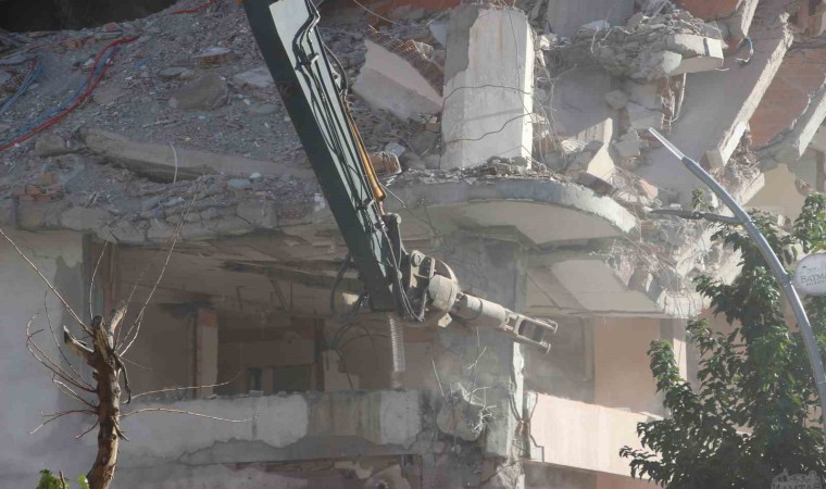 Batman’da Kahramanmaraş merkezli depremlerde ağır hasar alan binalar yıkılmaya devam ediyor.