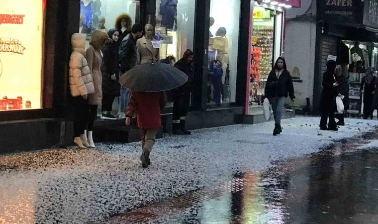 Kent merkezinde etkili olan dolu yağışı yolları beyaza bürüdü. Gülistan Caddesi’nde alışveriş yaptıkları sırada sağanak ve doluya hazırlıksız yakalanan vatandaşlar zor anlar yaşadı. Dolu nedeniyle yolda yürümekte güçlük çeken bazı vatandaşlar düşme tehlikesi geçirdi.