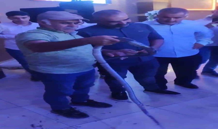 Batman’da yılan avcısı olarak bilinen Hasan Doksal, davetli olduğu düğüne bahçede yakaladığı yılanla gitti.