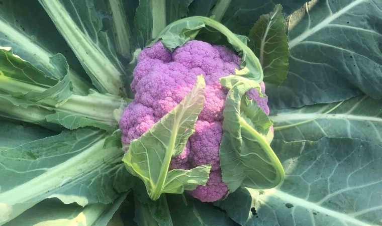 Batman’da yaklaşık 50 dönümlük alanda ekilen 70 bin karnabahar fidesinden biri mor oluna ilgi odağı oldu.