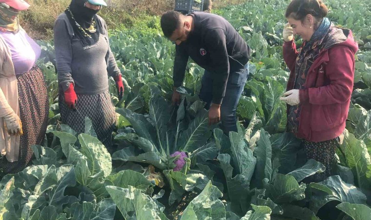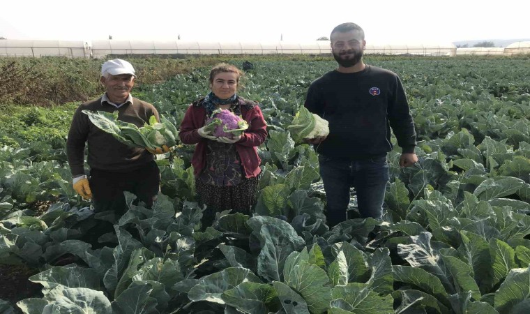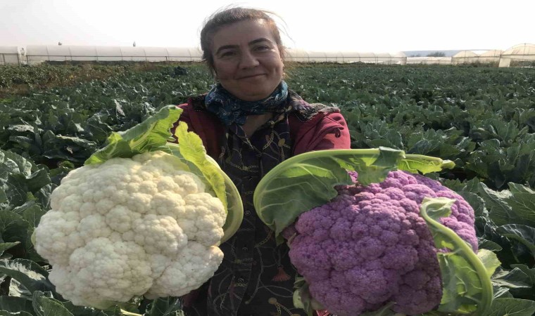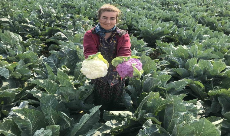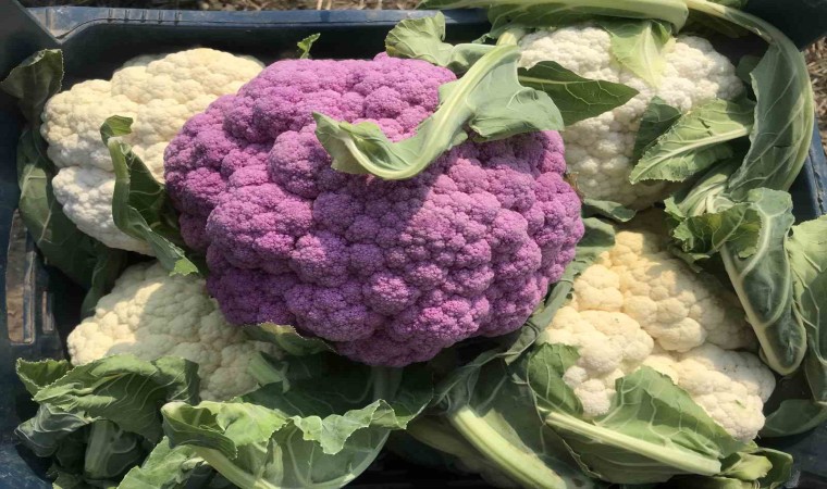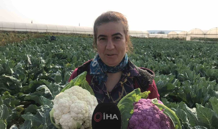 Yaklaşık 70 bin fide dikimi yaptığını belirten çiftçi Oğuz, hasat sırasında karşılaştığı mor karnabahar karşısında şaşırdı.
