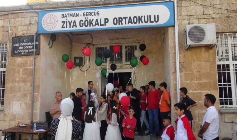 Batman’ın Gercüş ilçesinde Filistin’de yaşananlara farkındalık oluşturmak amacıyla düzenlenen programda öğrenciler tarafından gökyüzüne Filistin bayrağının renklerini simgeleyen balonlar bırakıldı.