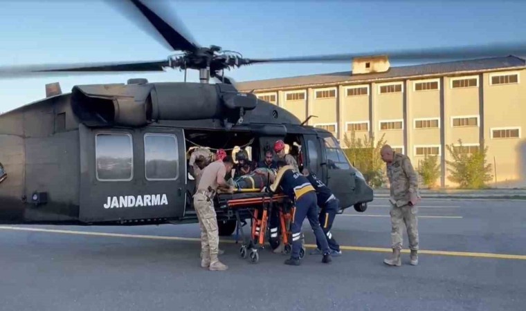 Sason ilçesinde avlanmak amacıyla 1947 rakımlı Helkıs Dağı’na giden Cevdet Aksoy (53) dengesini kaybederek kayalıklardan düşerek ağır yaralandı. Birlikte gittiği arkadaşının durumu jandarmaya bildirmesi üzerine bölgeye jandarma, AFAD ve UMKE ekipleri sevk edildi. Güçlükle kayalıklardan inen ekipler Aksoy’a ulaşarak ilk müdahalesini yaptı. Ağır yaralı Aksoy’un bölgeden alınması için, ekipler jandarma komutanlığından helikopter istendi. Talep üzerine Diyarbakır Jandarma Hava Grup Komutanlığından havalanan özel donanımlı kurtarma helikopteri kısa sürede olay yerine ulaştı. Helikopterden sarkıtılan sedye ile helikoptere alınan Aksoy, Batman İl Jandarma Komutanlığı’na getirildi. Ağır yaralı Aksoy, burada hazır bekletilen ambulans ile Batman Eğitim ve Araştırma Hastanesine sevk edildi. Tedavi altına alınan Aksoy’un hayati tehlikesi sürüyor.