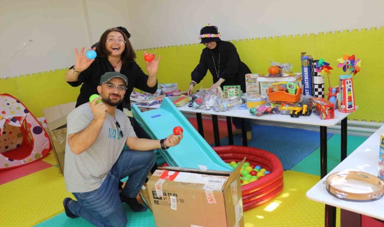 Çocuklara taç, toka ve bileklik gibi malzemeler yaptığını belirten Güler Yüzlü Çocuklar Projesi Kurucusu Hülya Erdoğan, "Çocukları gülümsetmek için onlara taç, toka ve bileklik yapıyorum. Mutluluklarına bir nebze katkıda bulunmak istiyorum. İstanbul’dan geldim. Sevilay hanımla tanıştım ve onun aracılığıyla yolculuğumuz devam ediyor" diye konuştu.