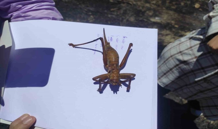 Batman’ın Sason ilçesinde yangın bölgesinde görülen 20 santimetre büyüklüğündeki etçil çekirgeyi görenler şaşkınlığını gizleyemedi.