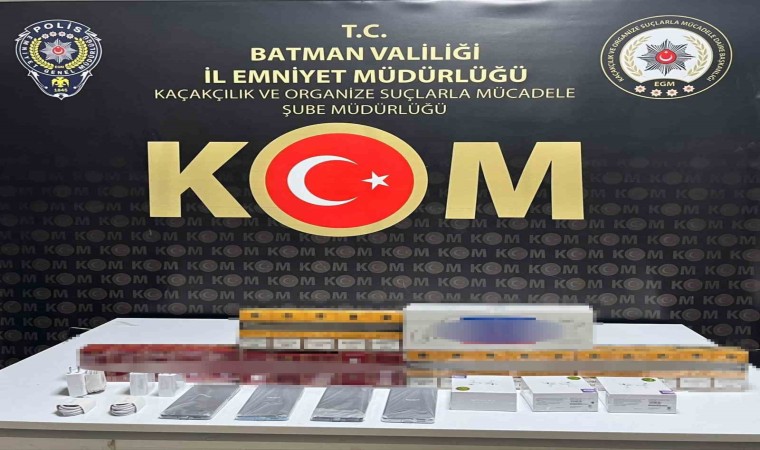 Batman’da İl Emniyet Müdürlüğü Kaçakçılık ve Organize Suçlarla Mücadele Şubesi ekipleri tarafından düzenlenen operasyonda, bin 571 paket sigara, 17 şişe ve 136 kutu içki, 4 cep telefonu, 3 şarj başlığı ve kablosu ile 3 kulaklık ele geçirildi.