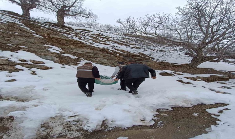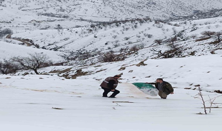 Batman’ın Sason ve Kozluk ilçelerinin yüksek kesimli bölgelerine yabani hayvanlar için yem bırakıldı.