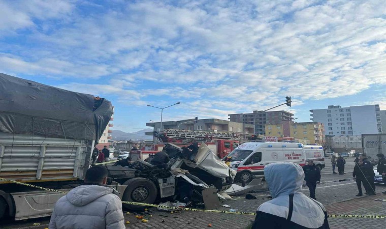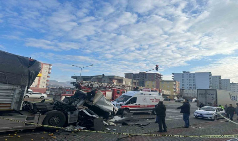 Alınan bilgilere göre, ilçenin İpek Yolu Caddesi’nde üzerinde Caner Özmen yönetimindeki 04 AP 640 plakalı tır, kırmızı ışıkta bekleyen 01 CGK 16 plakalı tıra arkadan çarptı. Çarpmanın etkisiyle tırın taşıdığı yük aracın kupa kısmının üzerine devrilerek aracı kullanılamaz hale getirdi.