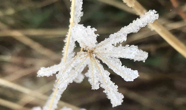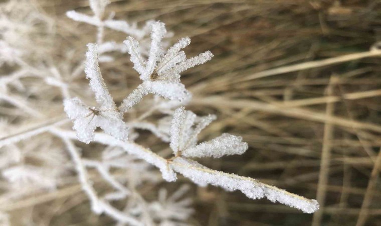 Hava sıcaklığının sıfırın altına düştüğü kentte bu sabah Kuyubaşı Mahallesi Emekli TOKi mevkisinde çiçek, bitki ve ağaç dallarında oluşan kırağı bölgeyi beyaza bürüdü. Ağaç, bitki ve çiçeklerde adeta gelinlik görüntüsü veren kırağı kartpostallık görüntüler oluşturdu.
