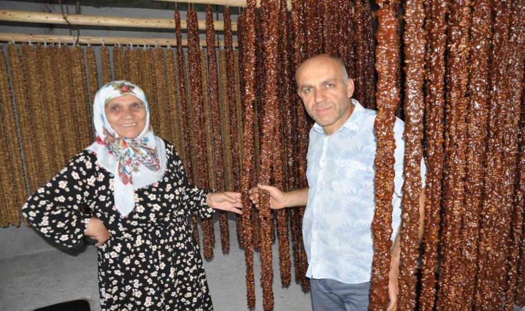 İlçede her ailenin cevizli sucuk yaptığını belirten Cemile Demir, 13 yaşından beri her yıl cevizli sucuk yaparak sattıklarını belirtti. Cemile Demir, “Bahçelerimizden üzüm koparıyoruz. Evde 3 gün beklettikten sonra sıkarak suyunu çıkarıyoruz. Suyunu meşe odunundan elde etiğimiz kül ile temizledikten sonra pekmez haline getirip bulamaç yapıyoruz. Ardından ceviz içini bulamaca bandırarak cevizli sucuk yapıyoruz. Ben 13 yaşından beri bu işi yapıyorum. Bunun yanında pestil ve pekmezin diğer ürünlerini de yapıyoruz” diye konuştu.