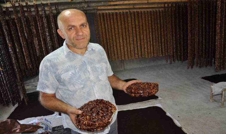 Toplanan cevizlerin kırılıp içinin çıkarılmasının ardından ipe dizilmesi ile başlayan yorucu mesai, daha sonra meşe odunu üzerinde saatlerce kaynatılan üzüm pekmezinden yapılan bulamacın cevizle buluşması ile devam ediyor. Bulamaca batırılan cevizler, yaklaşık bir hafta açık alanda kurutularak daha sonra satışa hazır hale getiriliyor.
