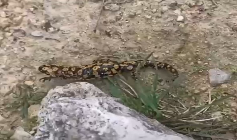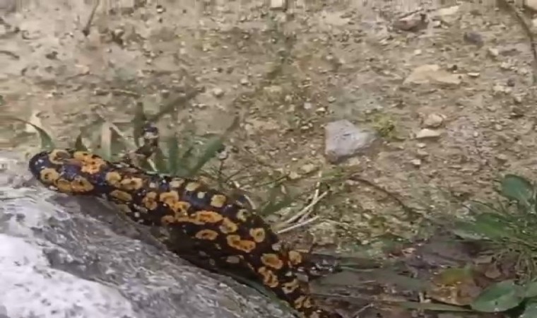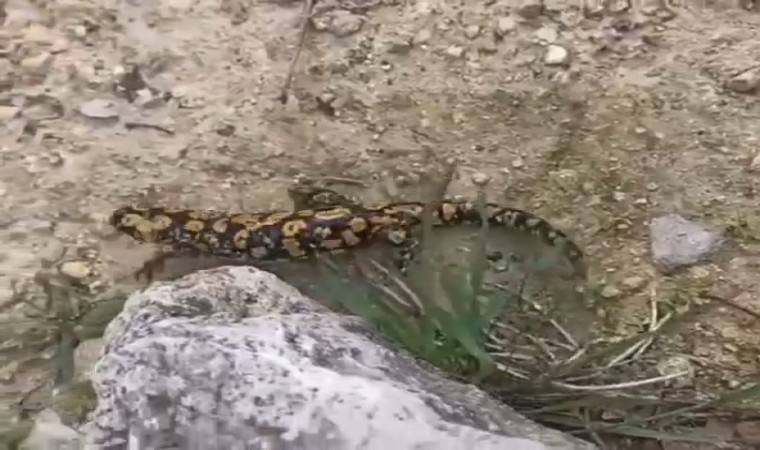 Batman’ın Hasankeyf ilçesinde Anadolu semenderi olarak bilinen ve aynı zamanda nesli tükenme tehdidi altında olan sarı benekli semender görüldü.
