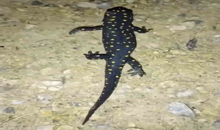 İlçeye bağlı Gümüşörgü köyünde gece saatlerinde yürüyüş yapan Emre Çetinkaya, yol üstünde hareket eden farklı bir tür sürüngen olduğunu fark etti. Cep telefonuyla hayvanı kayıt altına alan Çetinkaya, “Yolda yürüdüğüm sırada hareket eden bir tür sürüngen olduğunu fark ettim. Daha önce sosyal medyada fotoğrafını görmüştüm ve neslinin tükenme tehlikesi altında olan ‘sarı benekli semender’ olduğu söyleniyordu. Zararsız bir tür olduğunu bildiğim için elime alıp biraz sevdikten sonra tekrar doğal yaşam alanına bıraktım" dedi.