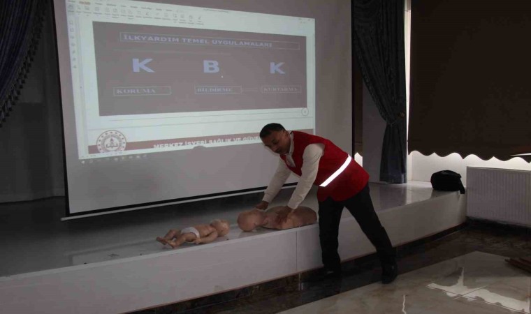 Daha sonra öğrencilere ilk yardım eğitimi konusunda uygulamalı eğitim verildi.