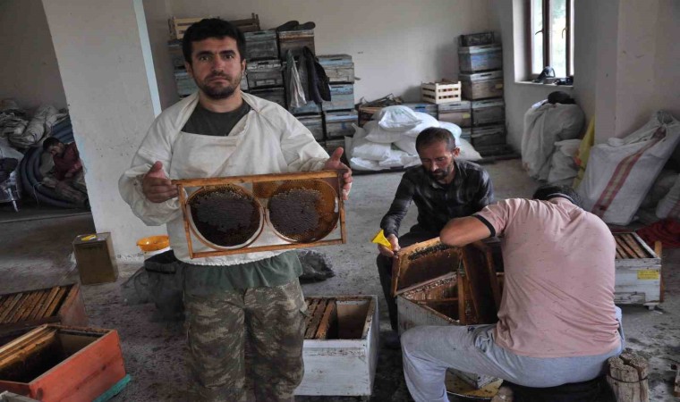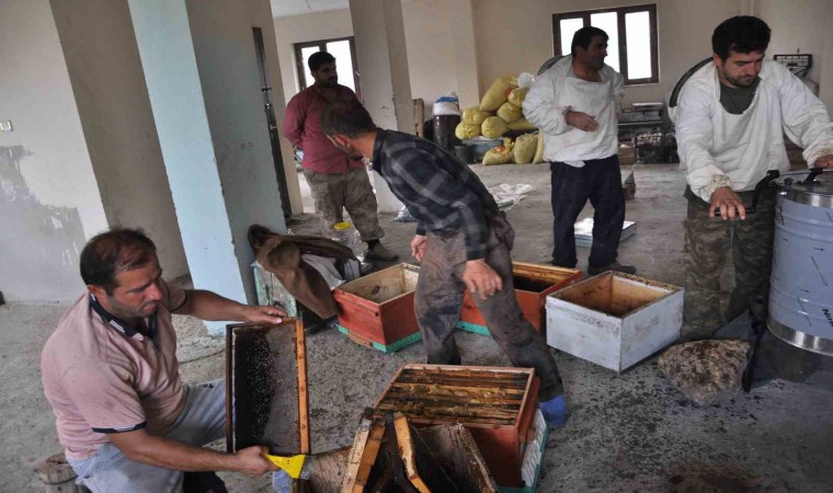 Batman’ın Sason ilçesinde zengin çiçek florasını üzerinde barındıran Mereto Dağı eteklerinde kara kovan arı besiciliği yapan üreticiler, 2024 yılının organik bal sağımına başladı.