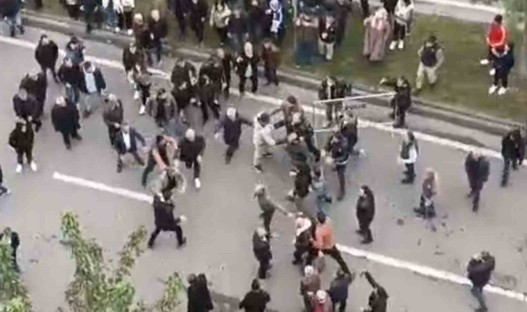 Batman Belediyesi önünde toplanan bir grubun içeri girmeye çalışıp polise taş atması sonucu yaşanan arbedede 9 gösterici gözaltına alındı.