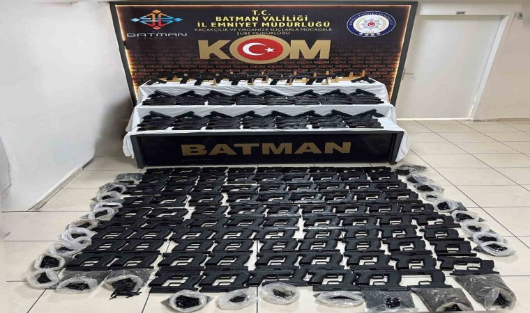 Batman Valiliğinden yapışan açıklamada, İl Emniyet Müdürlüğü Kaçakçılık ve Organize Suçlarla Mücadele Şube Müdürlüğü ekiplerince, şüphe üzerine bir tırın takibe alındığı belirtildi. Tır şoförünün başka bir araçta alıcı olan 2 zanlı ile buluşması üzerine polis ekipleri operasyon düzenledi. Tırda yapılan aramada, birleştirildiğinde atıma hazır 269 tabanca, 33 tabanca gövdesi ve 9 bin 557 tabanca parçası ele geçirilirken 4 şüpheli gözaltına alındı.