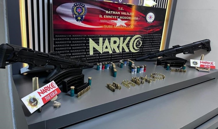Batman Cumhuriyet Başsavcılığı koordinesinde İl Emniyet Müdürlüğü Narkotik Suçlarla Mücadele ekiplerince son bir haftada yürütülen iki operasyonda; 244 gram metamfetamin, 2 ruhsatsız av tüfeği, 6 şarjör, 150 farklı kalibrelerde fişek çok sayıda paketlenmiş halde esrar ve skunk maddesi, suçtan elde edildiği değerlendirilen 2 bin 330 TL ve 100 dolar para ele geçirildi. Uyuşturucu madde satışı yaptıkları tespit edilen, farklı suç dosyalarından toplamda 10 yıl 8 ay kesinleşmiş hapis cezası bulunan bir firari ile yakalanan bir kişi, emniyet işlemlerinin ardından sevk edildiği adli makamlarca tutuklanarak cezaevine gönderildi.