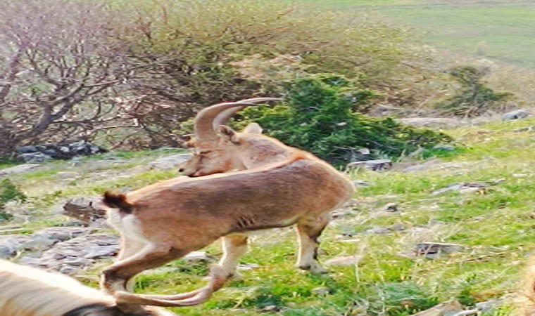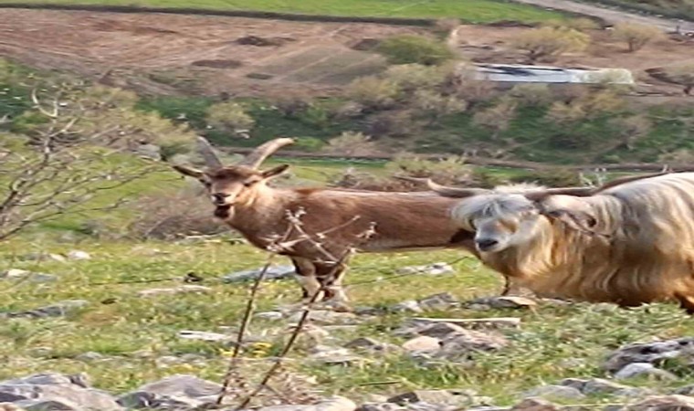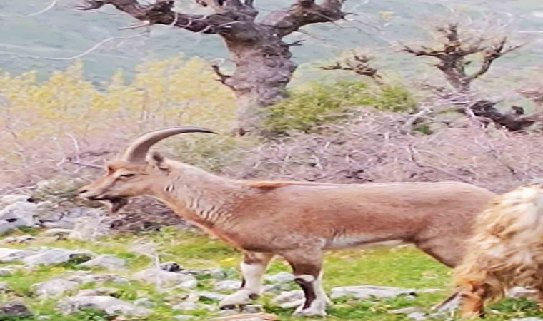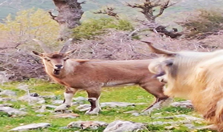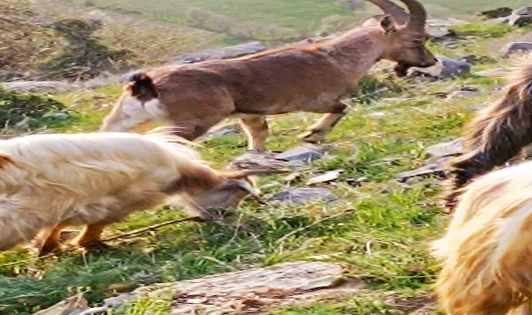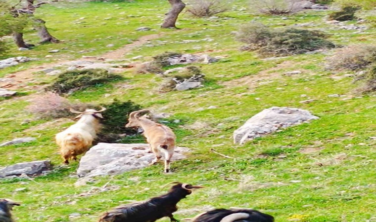 Batman’ın Sason ilçesinde keçilerini dağda otlatırken sürünün arasına karışan bir dağ keçisini gören çoban o anları cep telefonu kamerasıyla kaydetti.