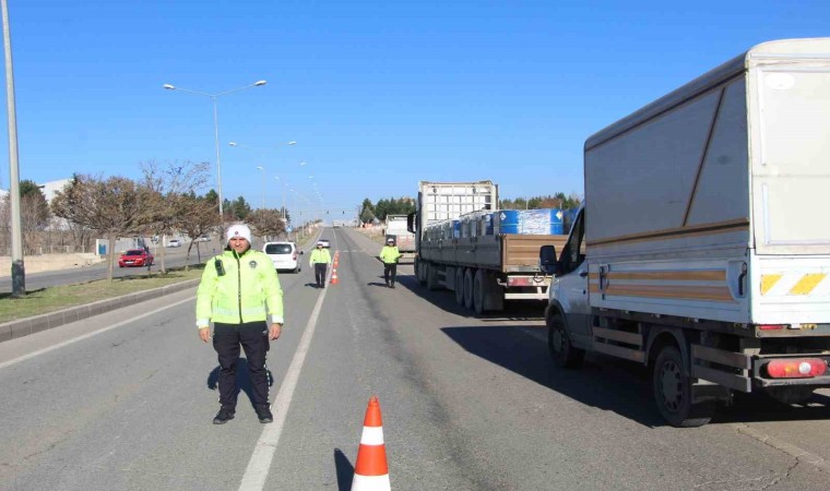 Batman’da emniyet müdürlüğüne bağlı trafik ekipleri, şehirlerarası yük ve yolcu taşıyan ticari araçlar için zorunlu kış lastiği uygulaması kapsamında denetim yaptı.