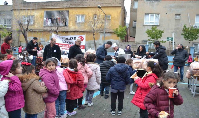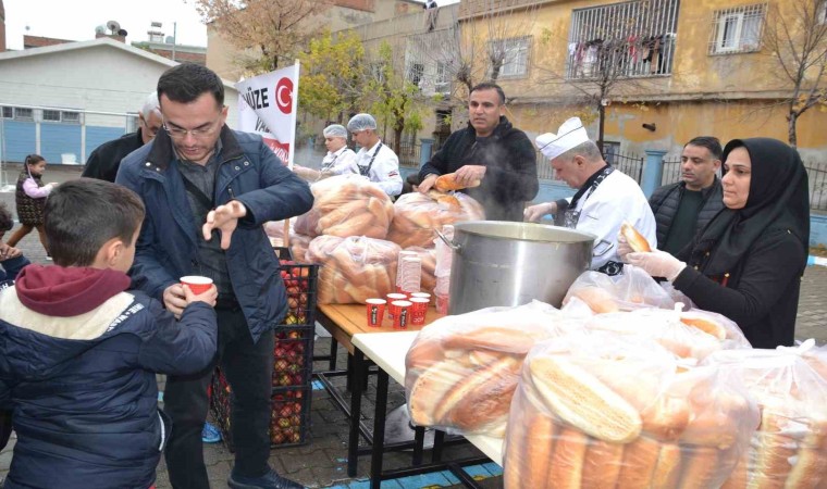 Batman’da başlatılan "Üstümüze Vazife Projesi" çerçevesinde bir hayırsever, geçen yıl trafik kazasında hayatını kaybeden oğlu için bin 500 öğrenciye sıcak çorba ve elma ikramında bulundu.