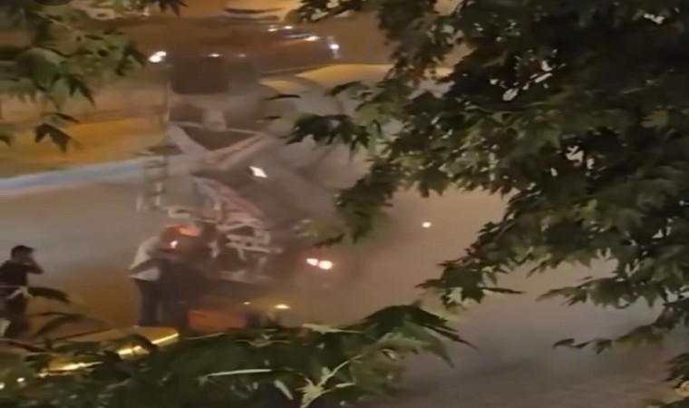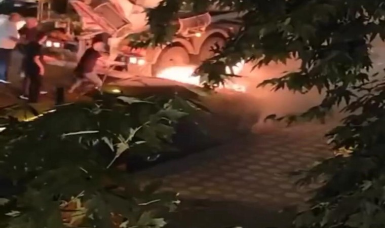 Batman’da gece saatlerinde park halindeyken yanan otomobil, yoldan geçen beton mikserinden sıkılan su ile söndürüldü.