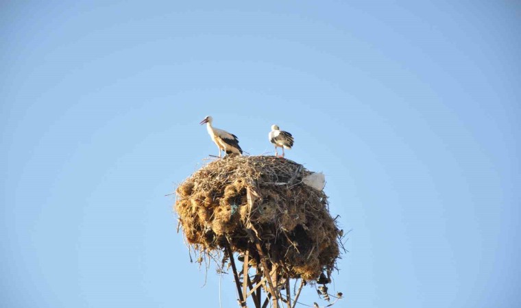 Batman’ın Sason ilçesinde Erdem ailesi, bahçelerinde bulunan elektrik direğinin başında yuva yapan ve göç etmeyen leyleklere komşu gözüyle bakıyor.