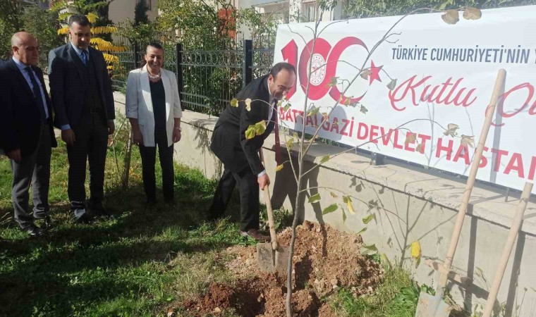 İl Sağlık Müdürü Erhan Berk’te Cumhuriyetin 100. yılında 100 ağaç dikimi ile bu coşkuya ortak olmak istediklerini kaydederek, “Cumhuriyetimiz 100 yaşına geldi, koca bir çınar. İnşallah önümüzdeki ikinci 100 yılı birinci 100 yılda daha hayırlı ve daha güçlü küvetli olacak, buna kalpte inanıyoruz. Hastanemizde Türkiye Cumhuriyeti’mizin 100. yılına yakışan bir hastane. En son bir MR çekim cihazımız eksikti, onunda ihalesi yapıldı bu ay içerisinde açılışını yapacağız” diye konuştu.