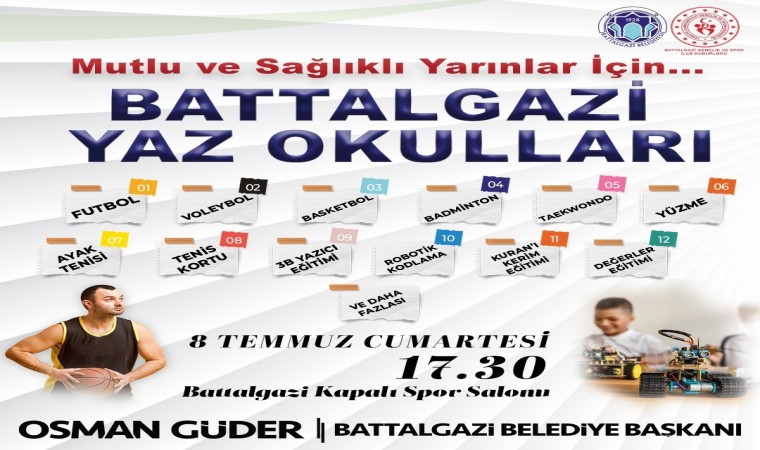 Etkinlik, 8 Temmuz Cumartesi günü Battalgazi Kapalı Spor Salonu'nda saat 17:30'da resmi açılışla başlayacak. 7-18 yaş arasındaki tüm çocuklar bu yaz spor okullarından ücretsiz olarak faydalanabilecekler.