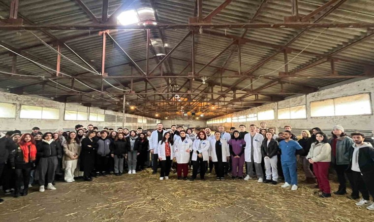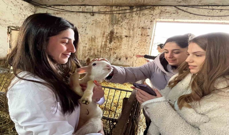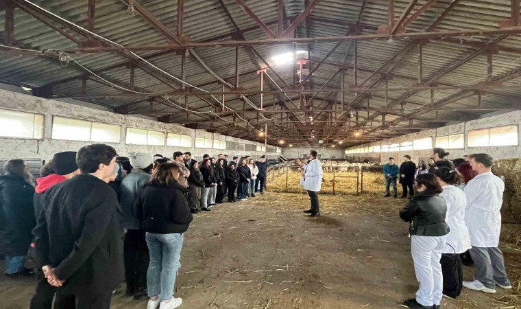 Yetiştirme çiftliğinde aldıkları uygulamalı derslerle teorik bilgilerini uygulamayla pekiştiren Veteriner Fakültesi öğrencileri, hayvan ırkları, barınak yapıları, üretim modelleri ve bulaşıcı hastalıklar konularında eğitim alıyor.