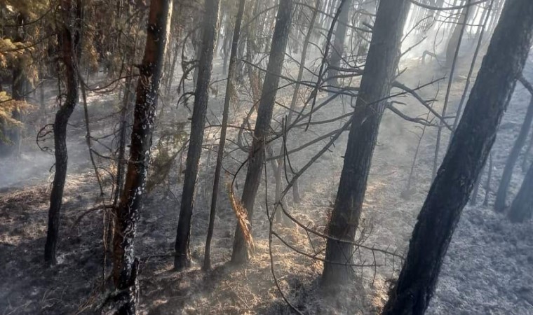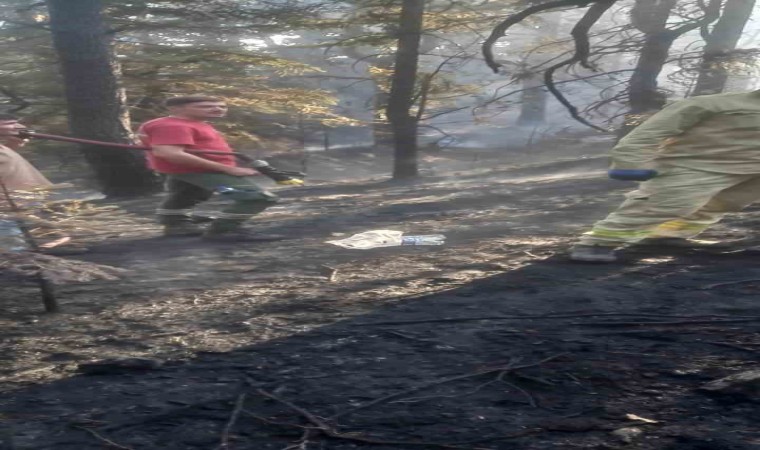 Yangında bir hektarlık alan zarar görürken ekiplerin soğutma çalışmaları devam ediyor.