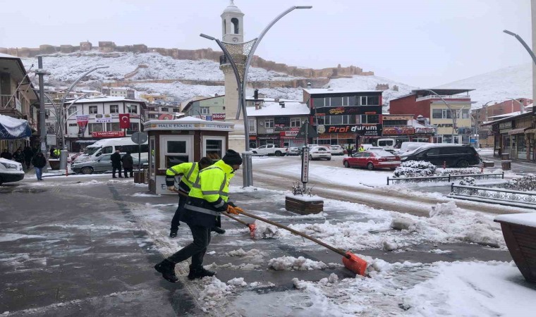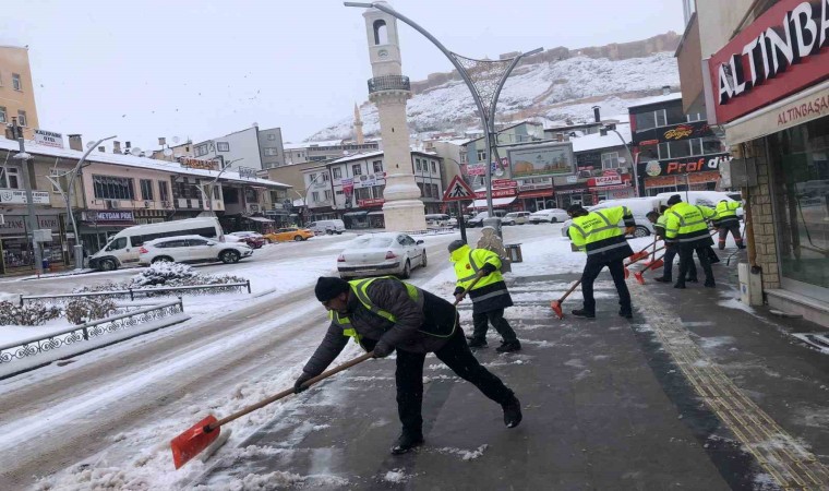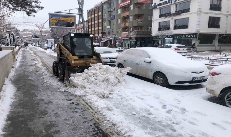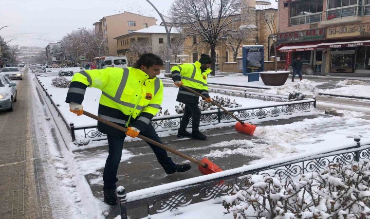 Kar kalınlığının yer yer 5 santimetreyi bulduğu şehirde ayrıca araç ve yaya trafiğinin olumsuz etkilenmemesi için yoğun çaba sarf eden ekiplerin bir kısmı da şehrin en işlek caddesi olan Cumhuriyet Caddesi’nde bulunan kaldırımlarda kar küreme çalışması yaparken bir diğer ekipte mahallelerden şehre inen merdivenlerde kar temizliği yapıyor.
