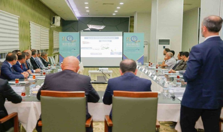 Vali Eldivan’ın açılış konuşmasıyla başlayan toplantı, Bayburt Üniversitesinin toplumsal katkı projeksiyonunun sunumu ile devam etti. Rektör Prof. Dr. Mutlu Türkmen’in "Bütünleşik Vizyon" başlığında anlattığı sunumda, Bayburt Üniversitesinin şehir merkezli sürdürülebilir kalkınma misyonunun faaliyetlere nasıl yansıdığı ve kurumlar arası ortaklıkların nasıl tasarlandığı kurul üyeleriyle paylaşıldı. Sürdürülebilir kalkınma ve Türkiye Yüzyılı vizyonuna entegre yapıdaki kurumsal faaliyetlerin son yıllardaki başarı göstergelerini üyelerle paylaşan Rektör Türkmen, gelecek hedefleri için anahtar kavramları, "kurumlar arası koordinasyon, amaçlar için ortaklıklar ve entegre dayanışma" olarak açıkladı. Spor, organik tarım, proje ve entegre kalite yönetimi alanlarında tasarlanan sürdürülebilir kalkınmanın toplumsal katkı ve çözüm arayışlarında nasıl konumlandığını da verilerle aktaran Rektör Türkmen, iş birliği ikliminin vesile olduğu fırsatlardan söz etti.
