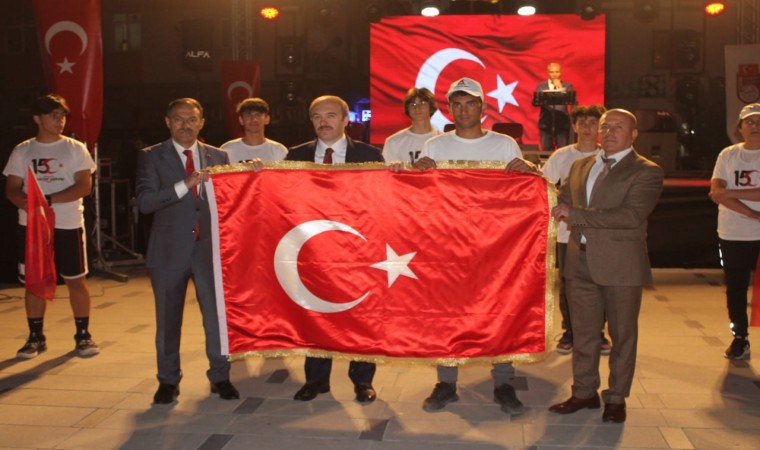 Konuşmaların ardından Saat Kule Meydanında başlayan 2 bin 500 metre mesafenin ardından Saray Bahçesi’nde biten koşuda Judoda Balkan Şampiyonu Yiğit Dinçer, Vali Cüneyt Epcim’e sancağı takdim etti.