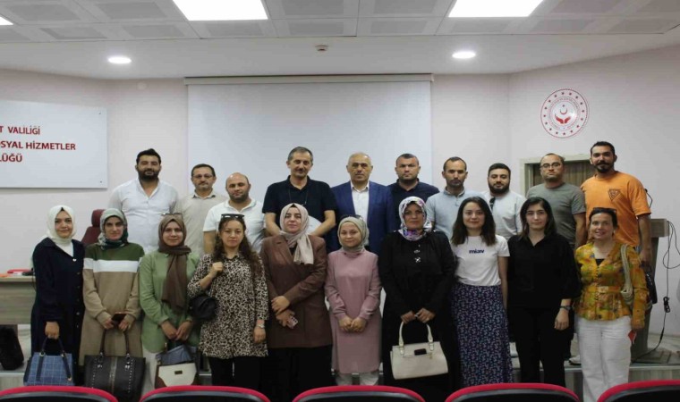 Aile ve Sosyal Hizmetler İl Müdürlüğü toplantı salonunda verilen eğitimde afet öncesi, sırası ve sonrasında yapılacak doğru davranışlar anlatıldı, çök-kapan-tutun ve deprem sırasında tahliye yöntemi uygulamalı olarak gösterildi.