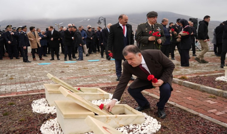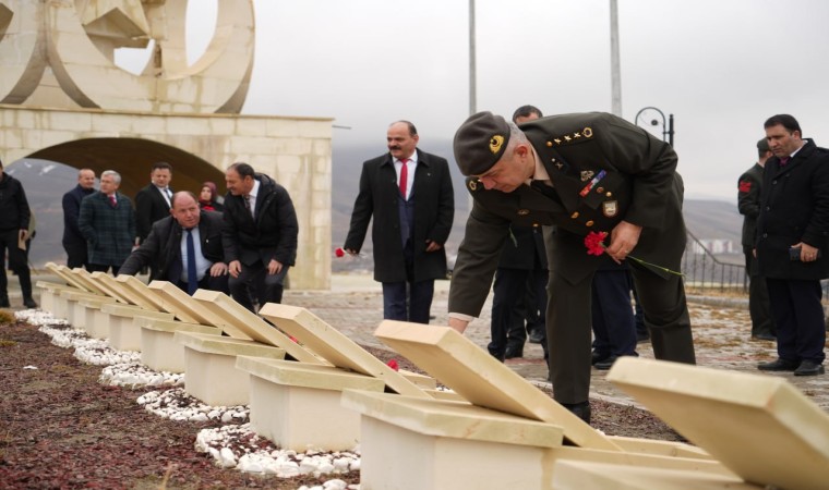 İhtiram mangasının saygı atışı gerçekleştirdiği törende temsili şehit mezarlarına karanfiller konularak dua edildi.