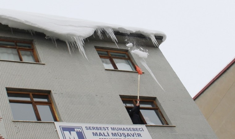 Günlük yaşamı olumsuz etkileyen kar yağışının ardından gece saatlerinde eksi 15 dereceye kadar düşen hava sıcaklığı nedeniyle çatı saçaklarında boyları yer yer 60 santimetreyi bulan buz sarkıtları oluştu. Bunun üzerine harekete geçen itfaiye ve zabıta ekipleri, saçaklardaki buz sarkıtlarını temizlemek için işe koyuldu.