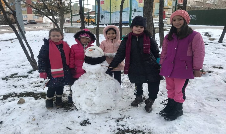Karın keyfini kartopu oynayıp, kardan adam yaparak ve poşetle kayarak çıkaran çocuklar eğlenceli vakit geçirdiklerini söylediler.