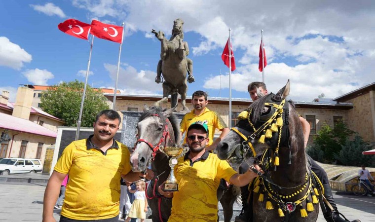 Dörtyol mevkiinden davul zurnayla yürüyüşe başlayan Bayburt Atlı Spor Kulübü, Saray Bahçesi kent meydanına kadar atlarla geldiler. Burada Bayburt barları oynayan, halaylar çeken kulüp oyuncuları, Bayburtlular tarafından ilgiyle izlendi. Etraftan geçenler oynanan barlara, coşkulu kalabalığa eşlik ettiler, cep telefonlarına sarılıp o anları kaydettiler. Adeta düğünü andıran, renkli görüntülere sahne olan olan şampiyonluk kutlamasında, sporcular ve vatandaşlar gönüllerince doyasıya eğlendiler. Oynamaktan yorulan, sıcak havada kan ter içinde kalan oyunculara kutlama sonunda plaketleri Bayburt Valisi Mustafa Eldivan tarafından takdim edildi, Vali Eldivan il dışında Bayburt’u temsil eden ve şampiyon olan Bayburt Atlı Spor Kulübü oyuncularını tebrik etti.