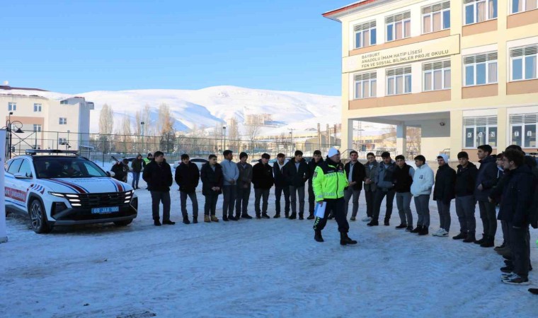 Bayburt İl Jandarma Komutanlığı ekiplerince, öğrencilere ve yetişkinlere trafik güvenlik eğitimi verildi. Soğuk havada emniyet kemerinin önemini anlatmak için sahada bulunan jandarma ekipleri, ilk önce trafik kurallarını, emniyet kemerinin önemini sözlü olarak aktardılar. Daha sonra vatandaşlar emniyet kemeri simülasyon aracına bindirilerek, emniyet kemerinin önemi uygulamalı olarak anlatıldı.