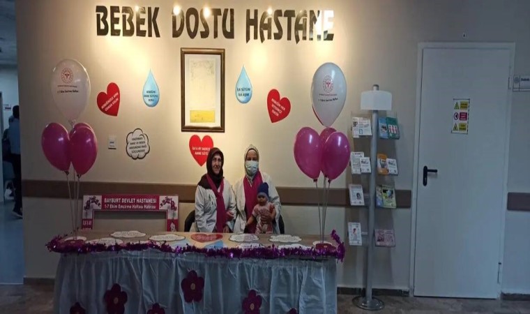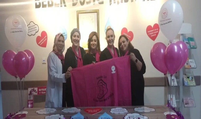 1-7 Ekim Emzirme Haftası münasebetiyle Bayburt Devlet Hastanesinde ’Bebek Dostu Hastane’ sloganı önünde stant açıldı. Stanta başvuran emziren annelere, bu yılın teması olan fuşya renkli fularlar ve emzirme önlüğü hediye edilerek, farkındalık oluşturuldu. Emzirmede zorluk yaşayan annelere, sağlıkçılar tarafından danışmanlık eğitimi verildi, ’Anne sütü ve Emzirme’ ile ilgili kitapçıklar dağıtıldı.